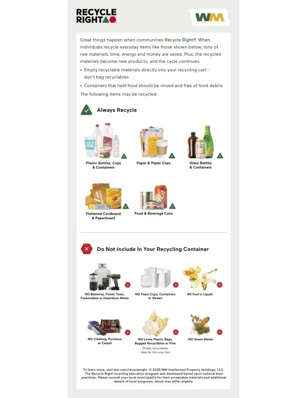 Southside Township Residents living east of County Rd 3 and South of Hwy 55 are on Monday of Gold week and the balance of the township is Monday of the Green Week. RECYCLING MUST BE CURBSIDE BY 7 A.M. Recycling is a free service provided by the township. Please contact the clerk for recycling enrollment.